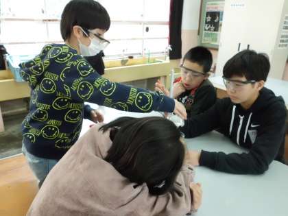 昨日の理科の学習は,ホウ酸を取り除くために「ろ過」という方法を用いて実験しました!以前に科学センター学習で教えて頂いたことがあったので,確認するように自分たちで進んで取り組むことができました。