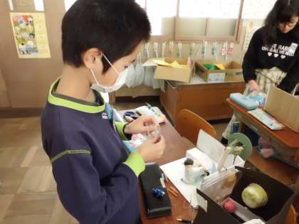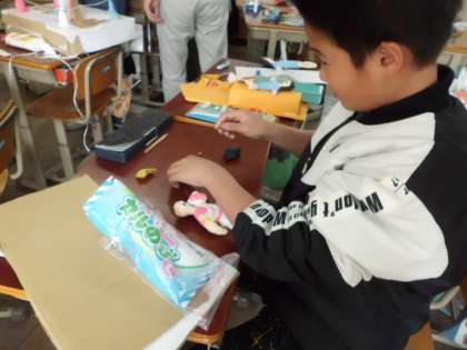 「12年後の自分の姿」を想像して,紙粘土と針金を使い動きのある立体作品を作っています。ラグビー選手になっている姿,保育士になっている姿。それぞれの思いが溢れている素敵な作品に仕上がっています。完成作品は図工展にて展示しますので,どうぞお楽しみ★