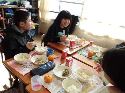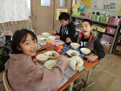 昨日の給食は年に一度だけ登場する『豆乳鍋』でした。この豆乳鍋にはうどんが入っています。そのうどんは…3年生の頃に見学させて頂いたあの!!製麺所さんのうどんです。「このうどんが楽しみやねんな〜♪」と言いながらお腹いっぱい食べました。おいしく調理して下さる給食調理員さんにも感謝です★おいしい給食ごちそうさまでした★