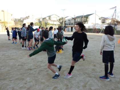 今日は月曜日。月曜日の放課後はGOGOランです!最後のメニュー『リレー』でビックリなことが!!なぜか,バトンではなくコーンを受け渡ししているチームが!!とても楽しそうにコーンを渡し合っていてとてもほほえましかったです★