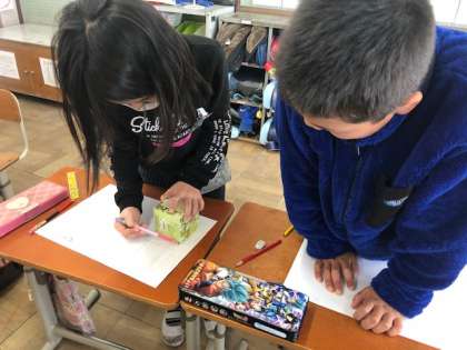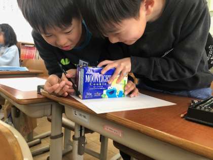 「同じ形の面が2つずつあった!」「私は6つあったよ!」などと、大発見!