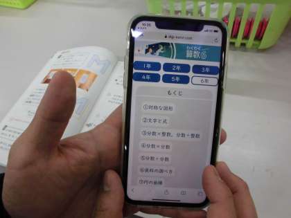 これはすごい!対称な図形に関する資料がいっぱい出てきました!これは自主学習に使うと効果的ですね!さらに,画面左上の「もくじ」をタッチすると,各学年の教材も見ることができます!