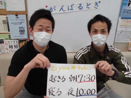 そこで,先生からの提案です!朝7:30に起きて,夜10:00までに寝ることをやってみてはどうですか?毎日の生活が乱れてきた人はぜひチャレンジしてほしいです。6you☆
