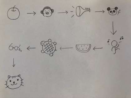 ことばをつかってのしりとりではなく,えでしりとりをします。