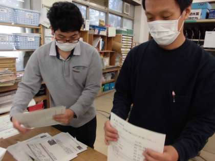 さて先生たちは,次にみなさんに渡そうと思っている課題プリントをまとめています。前回みなさんに取りに来てもらった課題プリントから,5年生の復習ではなく6年生の学習になっていることにお気づきでしょうか?内容がとっても難しくなっていますよね。悩むことも多いと思いますが,まずは教科書を広げてしっかりと読んでみて下さい。国語では,同じ言葉を見つけたら線を引いたり印をつけたりして,その言葉の近くに聞かれていることが載っていないか探してみてください。どうしても分からない時には,学校が始まったら先生や友達と意見を交流し考えていきましょう。だから安心して下さい★