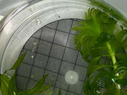 ある日のことです。昨日のメダカの卵のようすを見てみると・・・