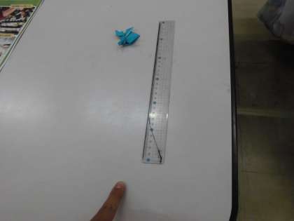 さて…学習を一生懸命進めたあとには気分をリフレッシュするために休憩を入れましょう!今日のおすすめは「カエルとばし」です。折り紙でカエルを作ります。(作り方知らん!!という人は調べてみてください!先生も調べたらすぐにできました!)そして,30cmものさしを横に置くだけです。これで完了!あとは,0cmのところでカエルの背中を押して手を離すと…とびました!!!本日の月城先生の記録は23cmです。みなさんはこの記録,超えられますか?ぜひ挑戦してみてください★