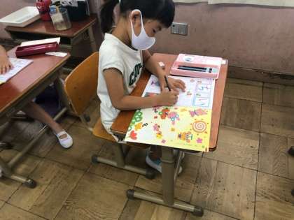 えんぴつのもちかたと ただしいしせいを いしきして ていねいに かいていきます。