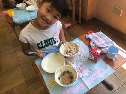 きのうから はじめてのきゅうしょくが はじまりました!