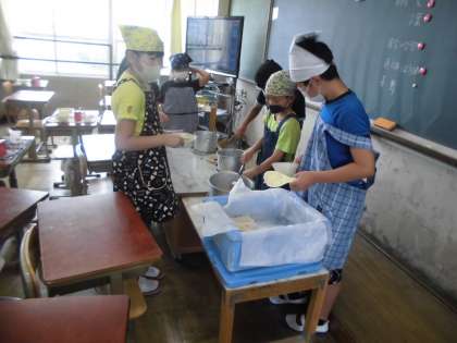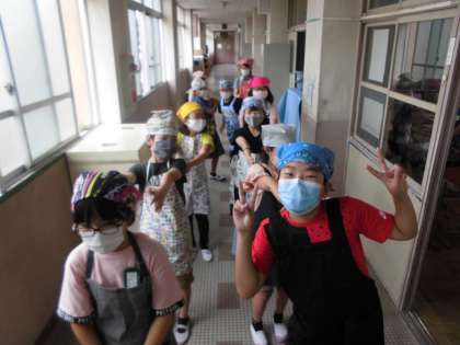 給食時間では,Aグループと同じようにソーシャルディスタンスで並んで,1組も2組も手際よく協力して準備することができました。おいしそうに食べている子どもたちの顔が,今も頭から離れません!!