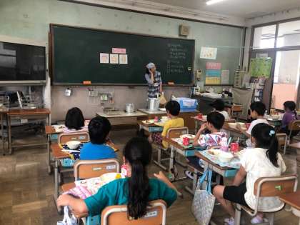 しょくのお話をしていただき,きゅうしょくもいっしょにたべました。