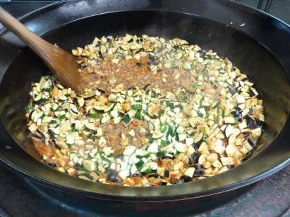 今日の給食は,スチームコンベクションオーブンを使った献立の「夏野菜のボロネーゼ(チーズ入り)」でした。夏野菜のズッキーニとなすを使ったミートソースに,焼いたじゃがいもを入れ,上にチーズをのせて,スチームコンベクションオーブンで焼きました。