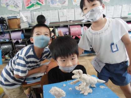 でも,2年生の子どもたちは元気です。新聞紙を使って造形遊びをしたり,粘土を使ってお気に入りの動物がいっぱいの動物園をつくったり♪
