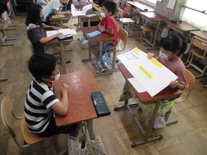 今日の1,2時間目に学年で自由研究発表会を行いました!1組の人,2組の人といろいろな人たちの自由研究を聞くことができ,子どもたちもとても楽しそうでした。
