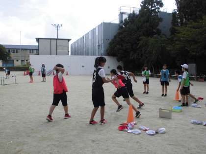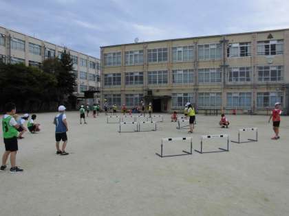 始まりました!ハードル走!4年生のころに一度経験しているので,学習の流れはスムーズです。久しぶりのハードルに「インターバル何メートルがいいかな?」「3歩で跳べた!」など,子どもたち同士で会話しながら楽しむ姿が見られました。
