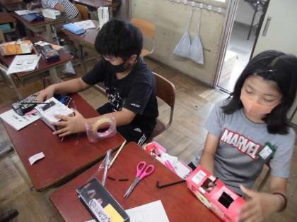 箱の大きさや形に合わせて針金を曲げたり,穴をあけたり…みんなとても上手にできていました!!