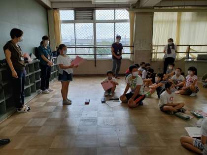 高齢者体験をした後は感想をグループで話し合い,発表しました。「手や足が動かしにくかった。」「階段を上るときにてすりがないと,しんどかった」「お年寄りの人が杖や車いすを使う理由が分かった」と,様々な意見が出ていました。これからもっと学習進めていき,学びを深めていきたいと思います。
