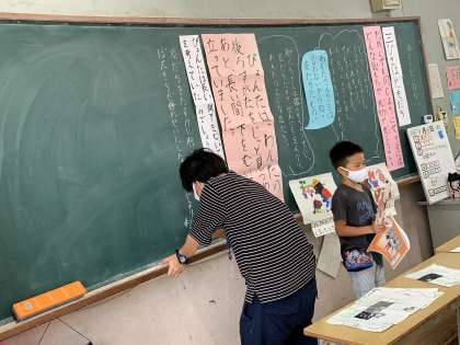 今日は教育実習生による道徳の授業がありました。自分にとって特別な友だちだけをひいきして関わるのはどうなのかな?とお話を通して考えていきました。みんな真剣に友だちとのことを考えていて,自分自身を見つめなおすことができていました。友だちとの接し方について改めて考えられた学習でした。