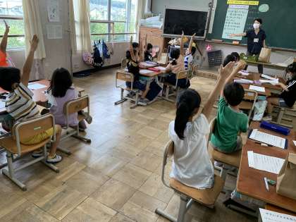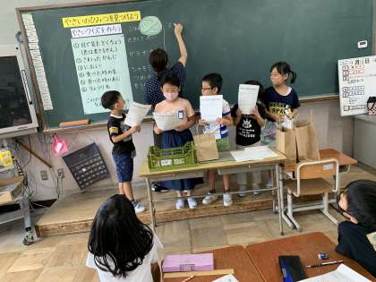 今日は班で野菜クイズを考えました。どんな見た目をしているかな?どんな触り心地かな?など,班で話し合い協力しながらクイズを考えていました。他の班の野菜クイズを解くことで,普段,苦手としている野菜について,とても意欲的に学んでいました。野菜には体の調子を整えるはたらきがあることを知って,「苦手だけど少しでも頑張ろう。」「野菜を食べて強くなろう。」といった声があがっていました。