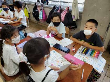 今日は自分の好きなものと,好きではないものを友だちに英語で伝えました。意外なものが好きだったり,嫌いだったりして,みんな驚きながらお互いの発表を聞いていました。外国語にも触れることができ,お互いのことをさらに知ることができて,とても素敵な時間になりました☆