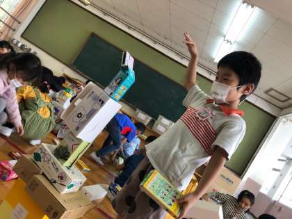 「ゆうえんちみたいにしたよ!」「たくさんつめたよ!」などと たのしそうなえがおで おしえてくれました!