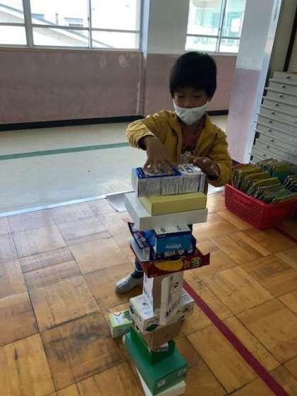 たくさんのはこをつかって つみかさねたり ならべたりして あそびました!
