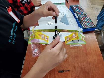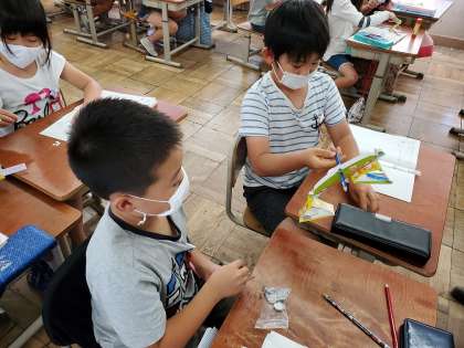 今日は「重さ」の学習の1時間目でした。はかりを使って,文房具の重さをはかりました。
