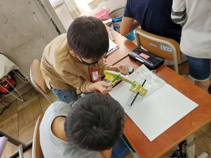 また,重さの単位には「g」があるということも学習しました。1円玉の重さが大体1gだということを使って,はかった文房具の重さをgで表しました♪