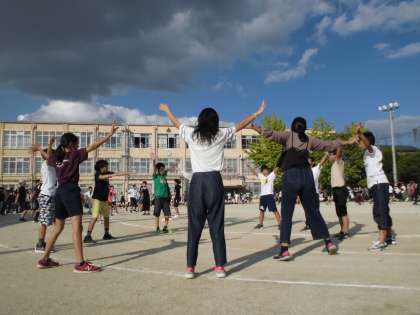 表現運動です。歌詞から感じたことや思ったことを話し合い,このダンスにどんな思いを込めるか,そこからどんな振り付けにすればその思いが伝わるのか,すべて子どもたちが考え,作り上げてきました。思いのこもった素晴らしいダンスになったと思います★