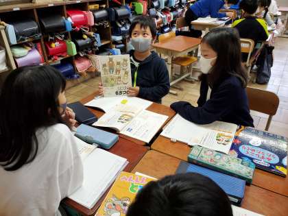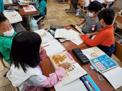 1年生に読み聞かせをするための本を,グループで話し合いました。1年生がもっと本を好きになって読んでくれるためには,どの本がいいのか…。皆でしっかり話し合って,本を選ぶことができていました♪