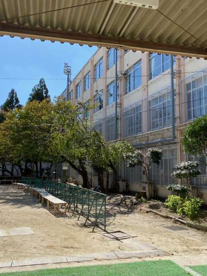 見上げる校舎がなんだかきれいに見えます。
