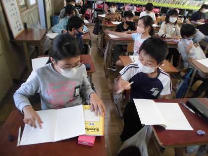 5年2組では,宿題係さんが「みんなで復習しよう!」ということで,勉強会を開いてくれました。漢字の問題などいろいろな問題を出して復習していました。