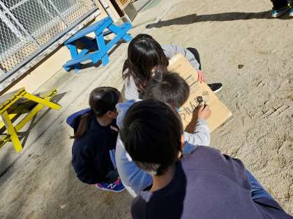 虫眼鏡で日光を集めると,どうなるのかを実験しました。日光をしばらく当てていると…あらびっくり!!けむりが出てきました。日光を集めると温かさや明るさが変わることを学びました(*^^*)