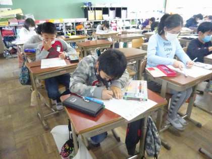 5年生の総合的な学習の時間「仕事について考えよう」の中で,このグループはポスター作りに取り組みました。安全について,挨拶についてなどそれぞれが必要だと思う内容を考えて,ポスター作りに取り組みました。