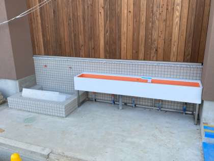 体育館の外側の手洗い場が運び込まれていました。何ともキュート!当然ですがきれい!