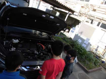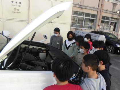 今日は実際の自動車を観察し,エンジンの様子や車内,部品・パーツについて調べました。「すごい…。」とみんな興奮と驚きの連続でした。