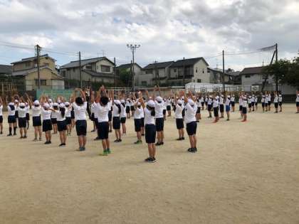 中学年の部では,開会式でラジオ体操に取り組みました。