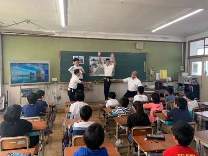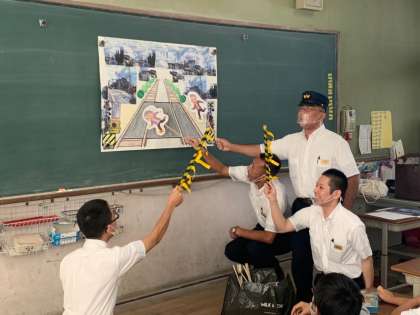 普段は真剣な眼差しでお仕事をされている運転手さんたちですが,子どもたちの前では,楽しく劇をしたり,クイズをしたりして,とても楽しく教えてくださいました。