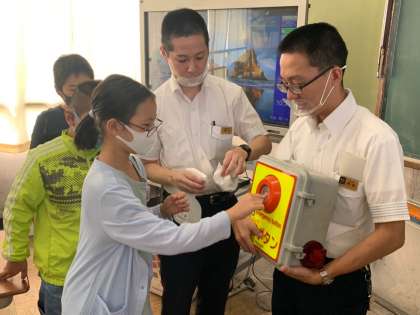 また,なかなか押す機会のない非常ボタンを押す体験もさせてもらい,もしもの時は,押して知らせることを学びました。