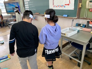 まずは,アイマスク体験!