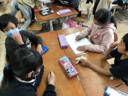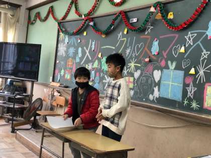 ずっと子どもたちが楽しみにしていたクリスマスパーティー!!いよいよ開催です!!「席替え間違い探し」や「絵が一番うまいグループはどこだ?」など楽しい遊びがいっぱいです。教室もかざり係が飾り付けをしてくれました。