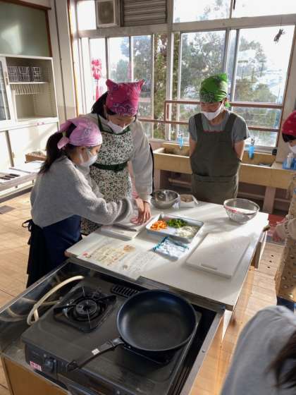 そんなことはさておき,6年生の様子を見ていると,何だか感慨深いものを感じます。それは,入学の頃を知っているから…。中にはもっと小さいころを知っているからかもしれません。そんな子たちが,包丁を巧みに使い,フライパンを巧みに使い…。時の流れを感じつつ,子どもたちの成長を目の当たりにして,ちょっぴりじ〜んとしていました。ほんまに大きくなったねぇ…。心も体も大きくなった6年生の姿に,勇気をもらった雪の舞う12月のひとこま。