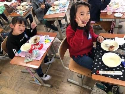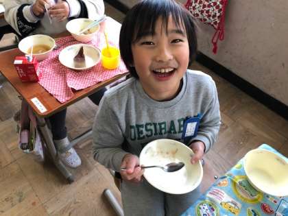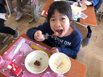 2年生 給食 チョコレートケーキ2