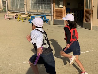 バトンパスや走順にこだわり,リレーを楽しんでいます。