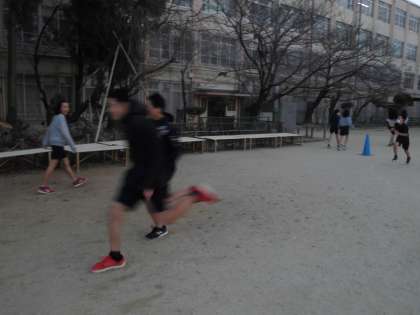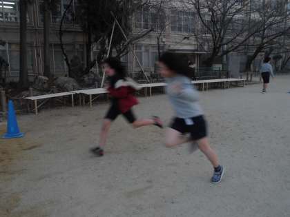 少し前の夕ランの様子です。短い距離をたくさん走った日です。寒い日でしたが思い切り走ると半袖・半ズボンでも汗をかいている友だちもいました。写真がブレブレなのは子どもたちのスピードがとても速かったことを表しています★