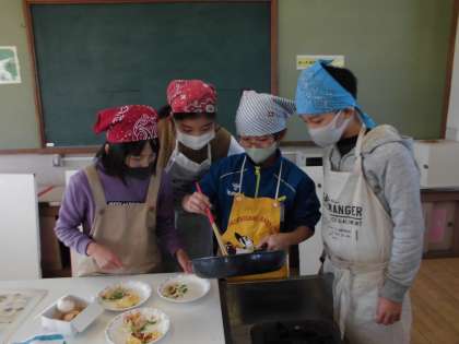 先週ですが,家庭科の学習で調理実習をしました!いろどりいためとスクランブルエッグを作りました!少し炒める時間が短くて「たまねぎがからい!」と驚いたグループもありましたが,おいしくできて大満足でした♪手早くできて朝ごはんにぴったりです!