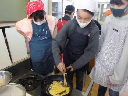 いろどりいためとスクランブルエッグを作りました!大変上手にできました!普段は野菜炒めやたまごの料理が苦手な友達も,自分たちで作ったらおいしいと少しも残すことなく!全部きれいに食べましたぜひお家でも作ってみて下さい!!