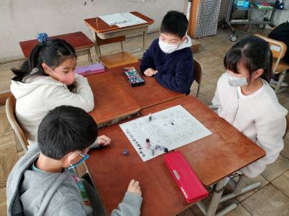 「冬休みの思い出すごろく」をしながら,友だちと冬休みの出来事や思い出を伝え合いました。お互いの冬休みの思い出を聞いて,「えー!そんなことがあったんだ!」「あっ自分と一緒だ!」と,驚いたり共感したり…。それぞれの様子が分かる楽しい時間でした♪