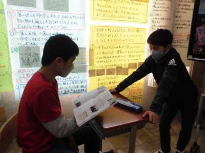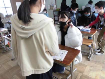 テスト前の休憩時間は,素早く手洗い・うがいを済ませすぐに教室で勉強タイムです。お互いに問題を出し合っています。社科のテストはできたかな?