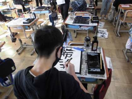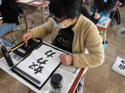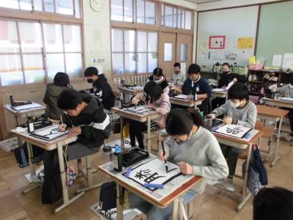 3学期初めての書写です!本日は『好きな言葉を書く』です。六年間で学習したことを生かして,自分の好きな言葉を決めて書きました。左右の組み立て方や点画のつながりなどに気を付けて書きました。それぞれの個性が出ていて,素晴らしい作品になりました。ぜひ!参観日でご覧ください!